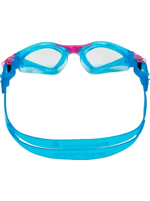 The Aqua Sphere Kayenne Junior Goggles – Clear/Aqua/Pink are designed for wide vision and performance. The unique oversized patented curved lens technology gives you 180 degree field of vision.