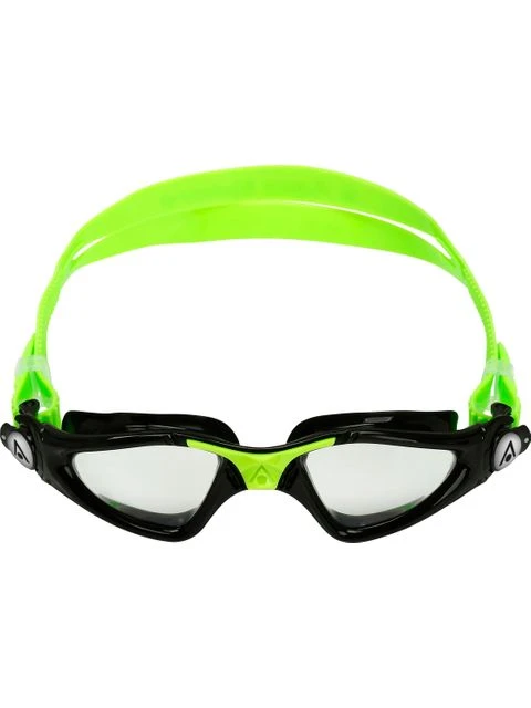 The Aqua Sphere Kayenne Junior Goggles – Clear/Black/Bright Green are designed for wide vision and performance. The unique oversized patented curved lens technology gives you 180 degree field of vision.