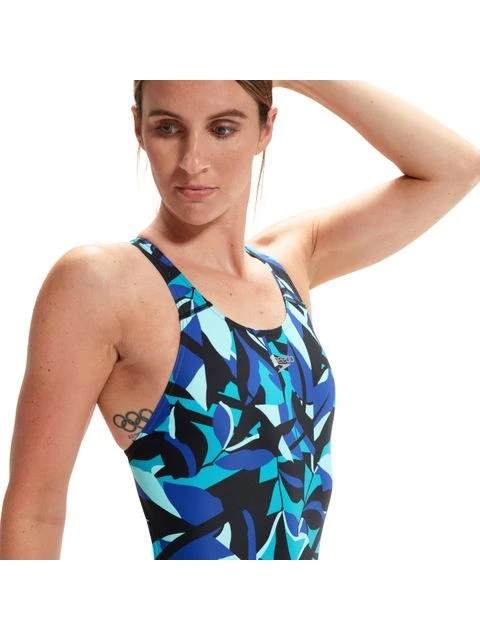The Speedo Powerback One Piece – Chrome Blue/Aquarium will have you feeling energised as you as you tick off your lengths in training wearing this stylish Powerback swimsuit, featuring a brokenup geometric print in sophisticated tones of blue, green and black. Ideal for all your swim sessions, the powerback style includes an open back to aid shoulder movement and flexibility on every stroke. he suit is also fully front lined for comfort and modesty in and out of the water. A great choice for frequent training sessions, Speedo ECO EnduraFlex fabric offers higher chlorine resistance than standard swimwear fabrics and fits like new for longer with CREORA HighClo. Yarns in the fabric are made from 100% recycled waste fabric, so it’s better for the environment too.