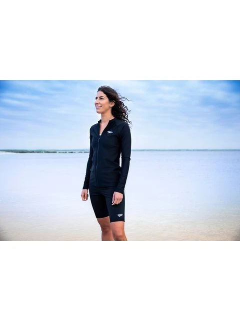 The Speedo Womens Jammers – Black offers kneelength coverage when swimming. They are solid black with an embroidered Speedo logo on the front and Endurance+ logo on the back. These shorts can be mixed or matched to a range of Speedo crop tops.