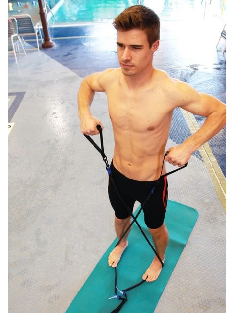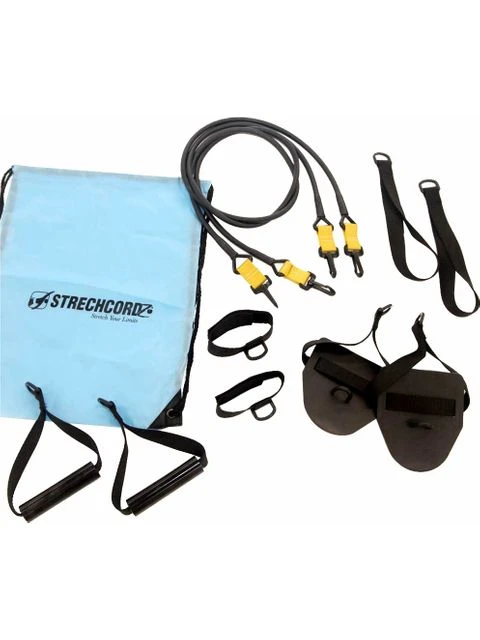 The StrechCordz Modular Set S103 is an exercise machine in a bag. The Modular set is a complete wet or dry-land swim training tool that can be used for pulls, rows, raises, curls, flies – nearly any resistance exercise you can imagine. Swimmers use StrechCordz resistance exercise products to improve stroke, strength and endurance.